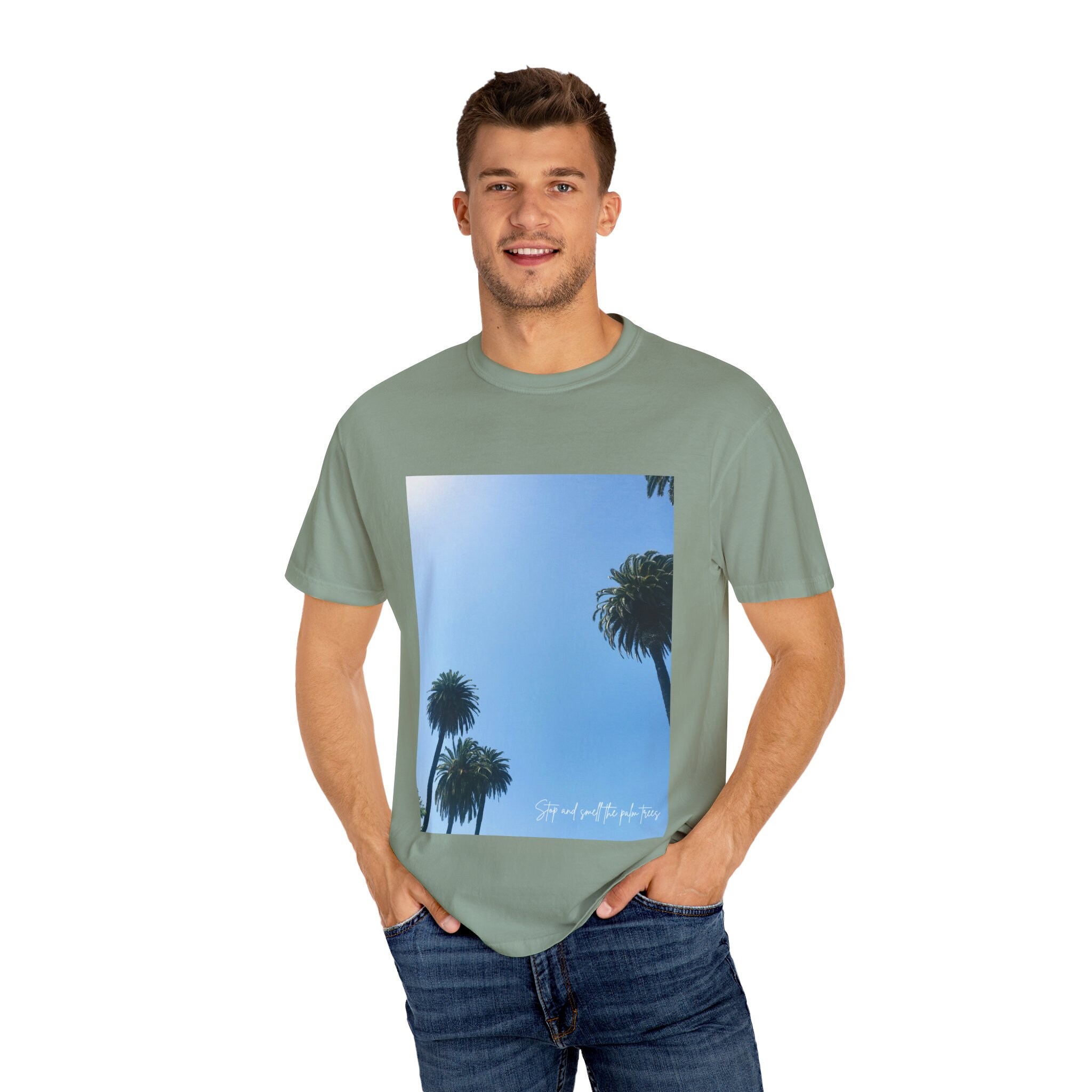 Don the epitome of Sol Style: a unique palm trees t-shirt! Made using 100% U.S. cotton that is ethically grown and harvested, so you can sleep at night (literally and figuratively) ;)