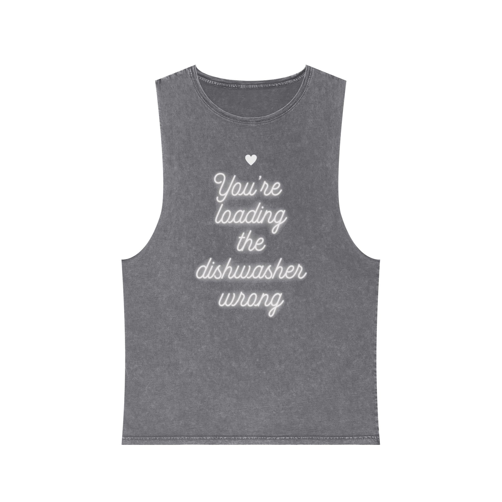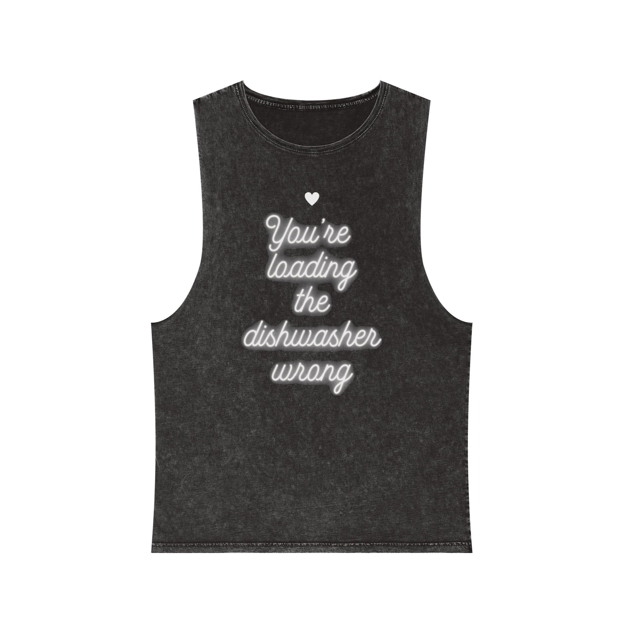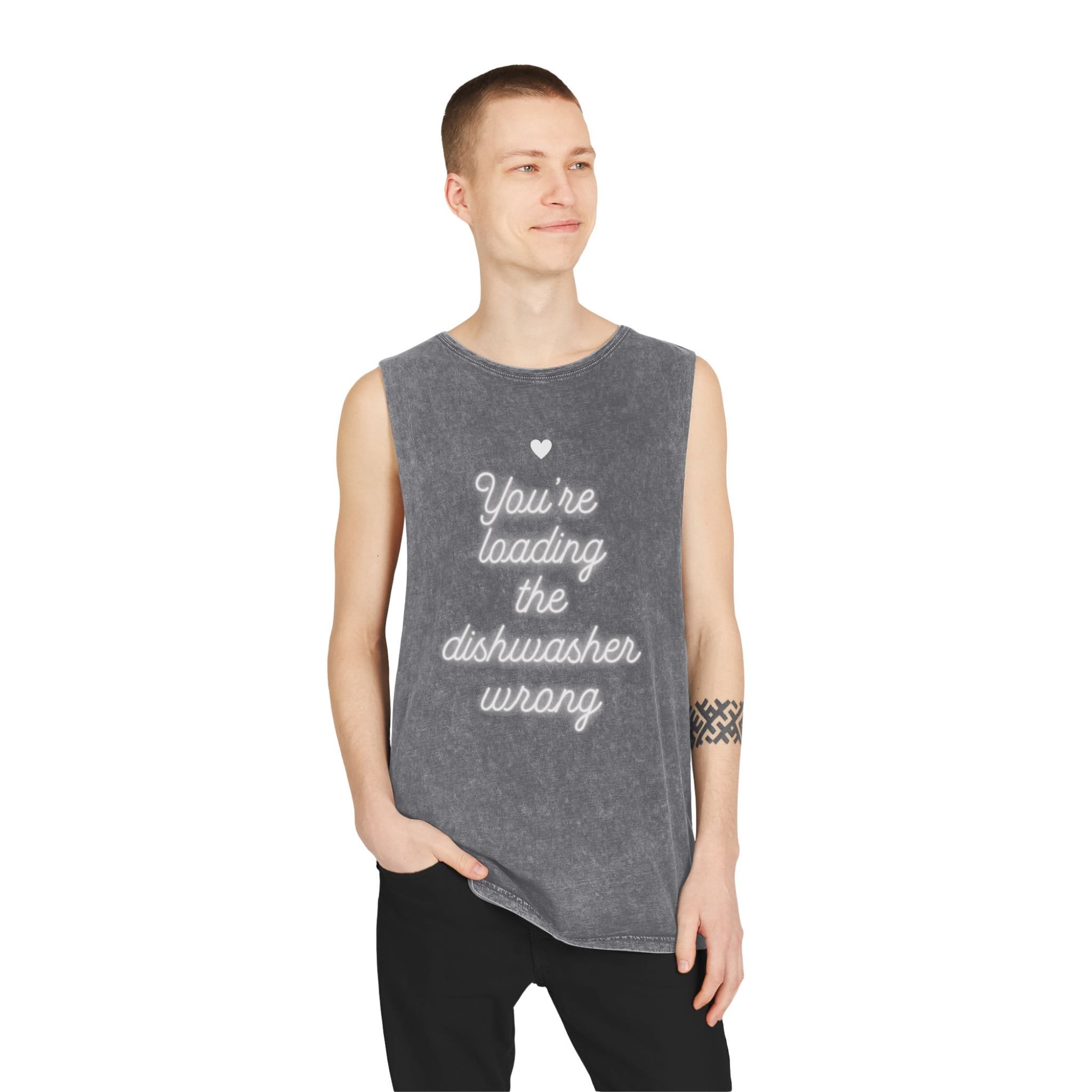 Embrace your dishwasher elitism with an edgy stonewash tank top, which will be sure to send the message to your roommate on how to be decent. If you're not sure what this message means, keep walking. Thx!